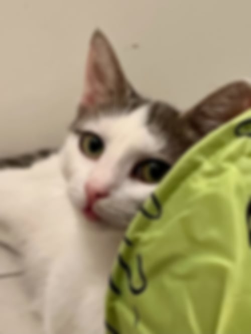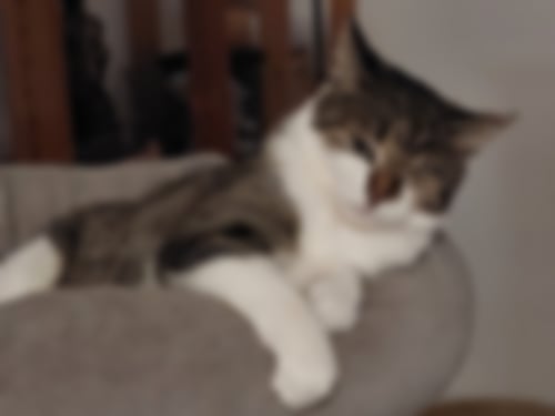 Bei Aura wurde ein sogenannter eosinophiler Granulomkomplex festgestellt. Das bedeutet: Sie könnte lebenslang auf Spezialfutter, regelmäßige Medikamente und tierärztliche Betreuung angewiesen sein. Doch wer sich für Aura entscheidet, bekommt eine anhängliche, liebevolle Katze mit außergewöhnlichem Charakter und viel Dankbarkeit im Herzen.